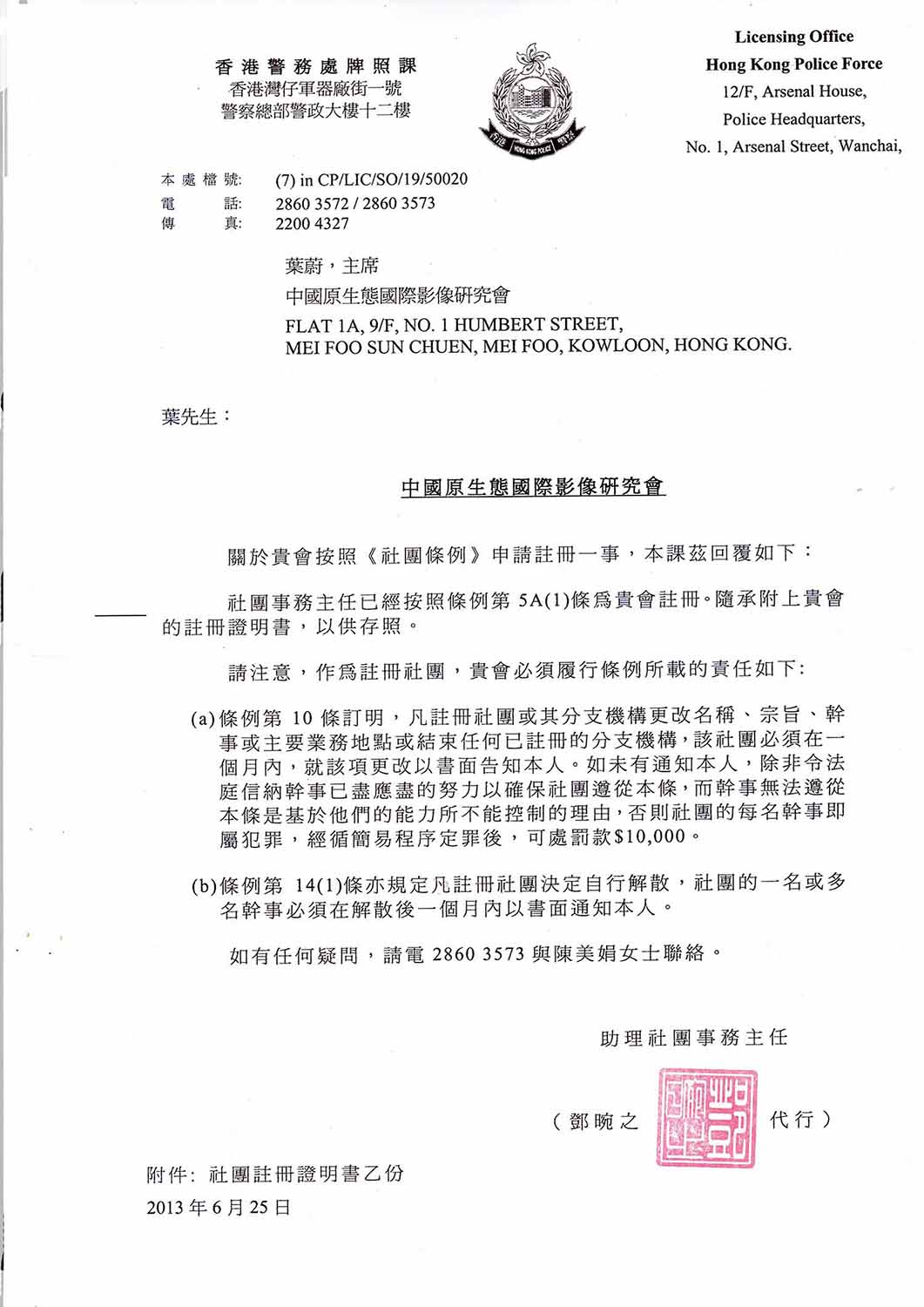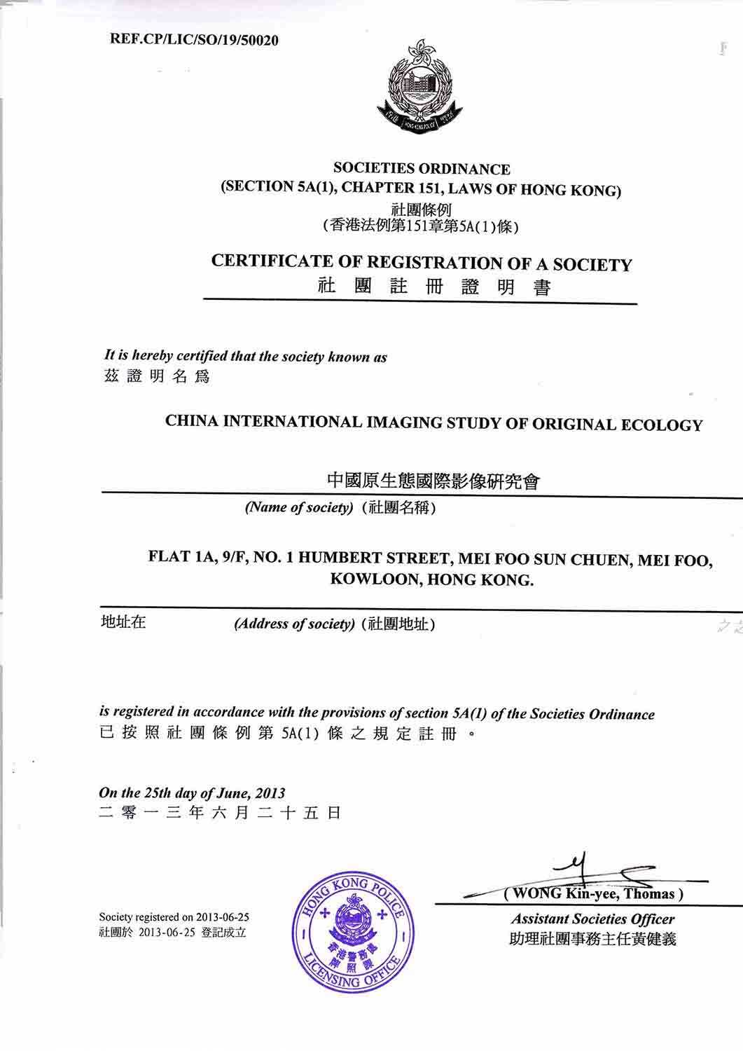 社团注册证明书